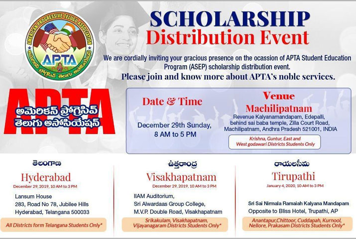 With this recently conducted scholarship program, APTA has plans to help over 1200 students in this just year and more in the years to come. The scholarship is expected to cover students from 10th, 12th standard and even in their inter and the ones pursuing any sort of professional degree.